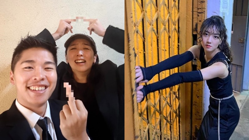 試當真|游學修Ellen豎中指合照