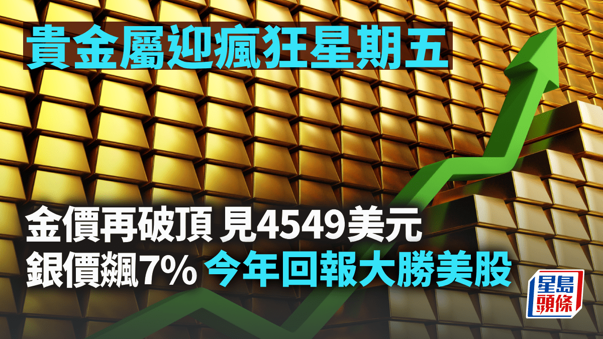 貴金屬迎瘋狂星期五 金價再破頂 見4549美元 銀價飊7% 「今年回報大勝美股」