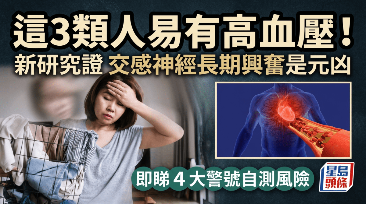 這3類人易有高血壓!新研究證交感神經長期興奮是元凶 即睇4大警號自測風險