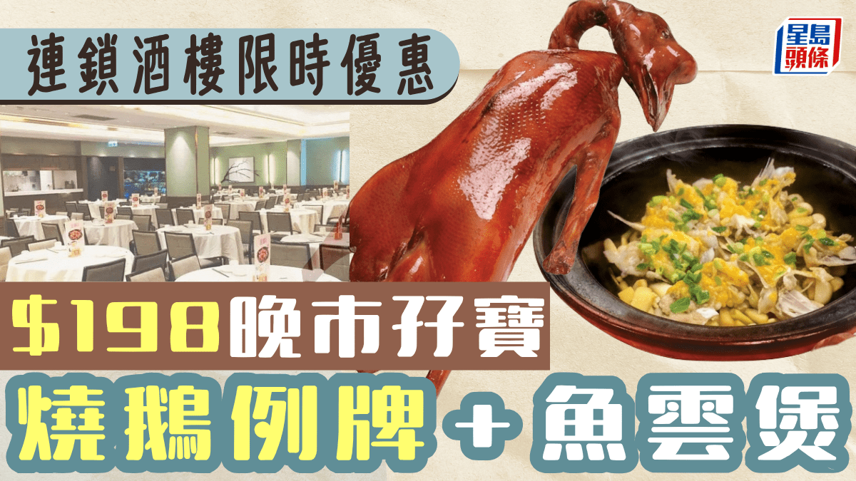 連鎖酒樓晚市孖寶優惠!$198嘆齊燒鵝例牌+魚雲煲 全線分店6pm起供應