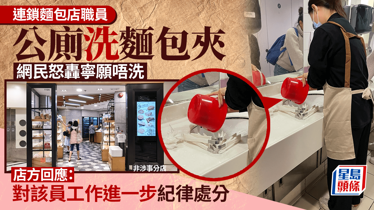 連鎖麵包店職員公廁洗麵包夾 網民怒轟寧願唔洗 店方回應指嚴重違反指引