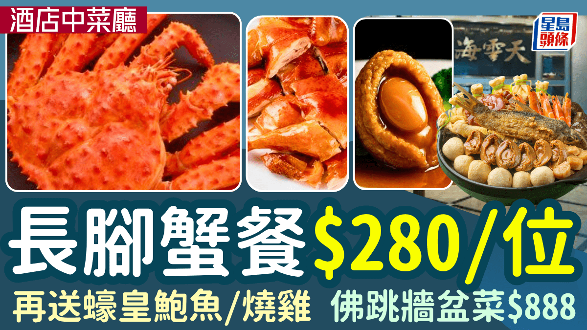 酒店中菜廳長腳蟹餐$280/位!再送蠔皇鮑魚/燒雞 另設$888佛跳牆盆菜