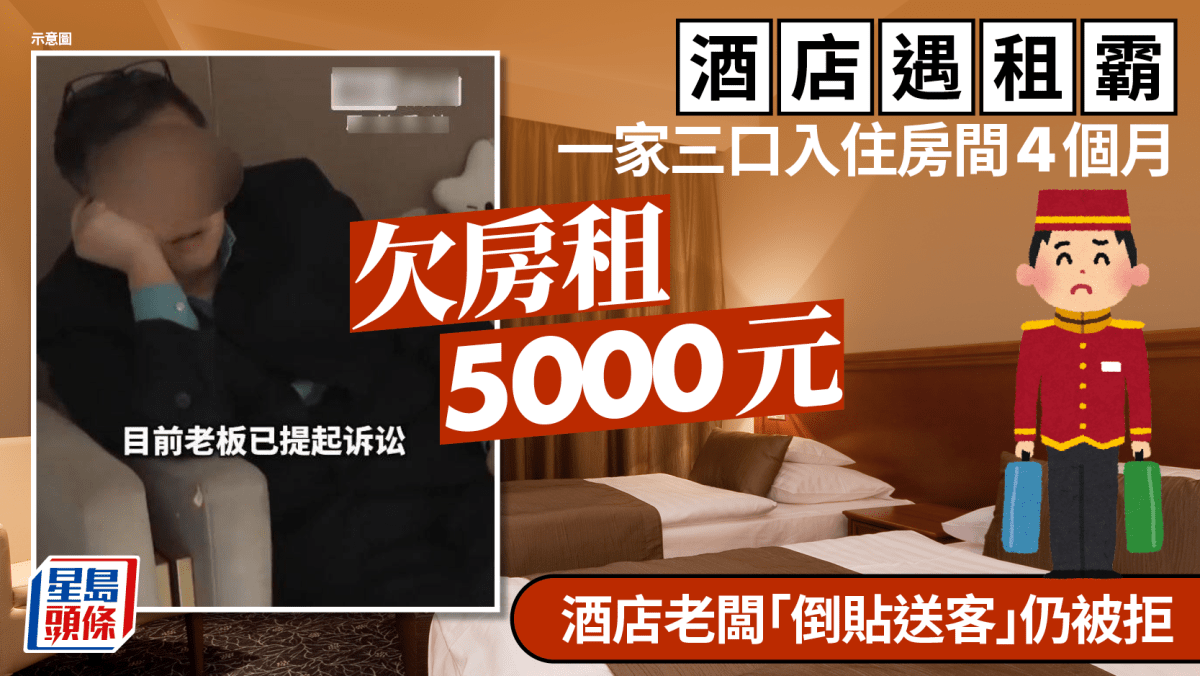 酒店租霸︱一家3口住4個月欠¥5000房費 老闆提「倒貼送客」遭拒