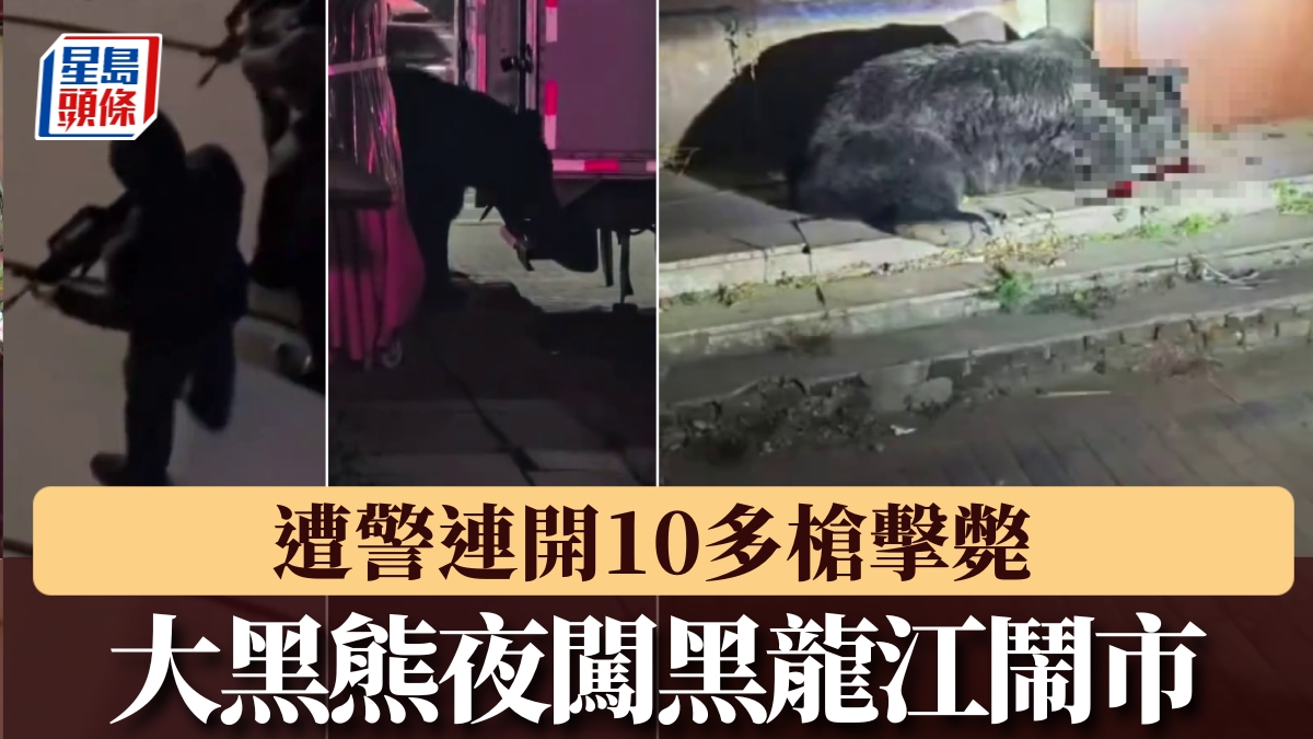 警方接報後,有警車和消防車紛紛趕來,多名警察荷槍實彈,上到附近一樓平台,其中一名警察連開10多槍,將大黑熊當場擊斃。