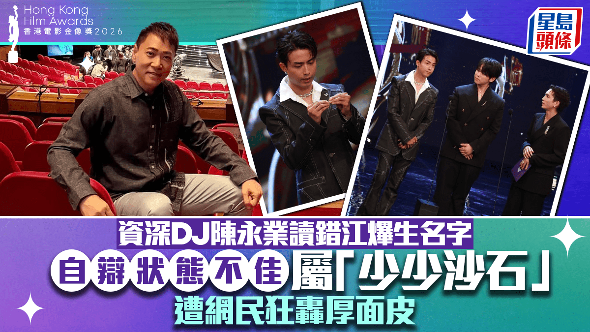 金像獎2026丨資深DJ陳永業讀錯江𤒹生名字 自辯屬「少少沙石」遭狂轟 30字道歉平息風波
