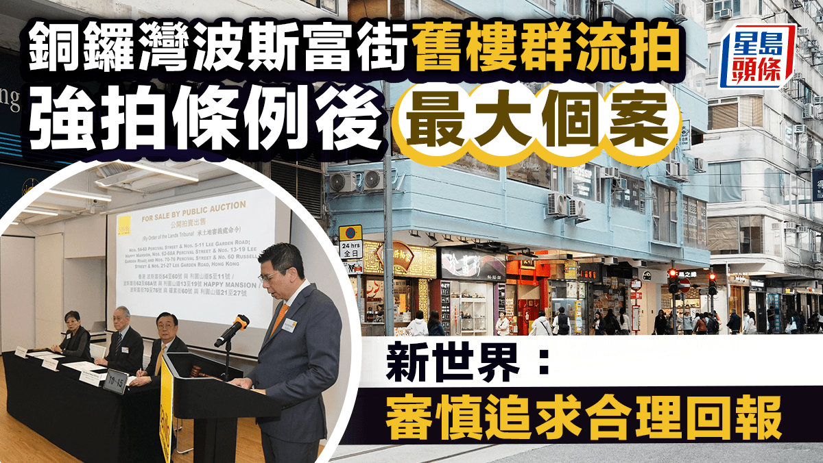 銅鑼灣波斯富街舊樓群流拍 強拍條例後最大個案 新世界:審慎追求合理回報