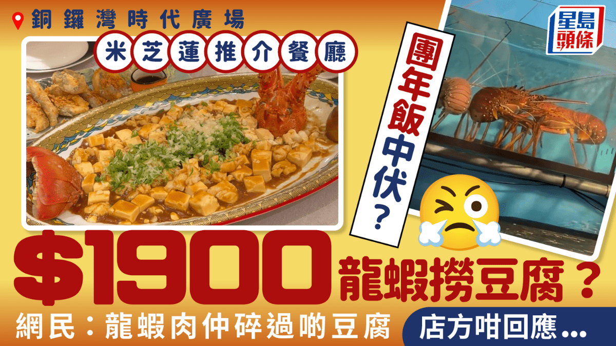 銅鑼灣米芝蓮推介餐廳團年飯中伏?$1900天價龍蝦撈豆腐 網民:龍蝦肉仲碎過啲豆腐
