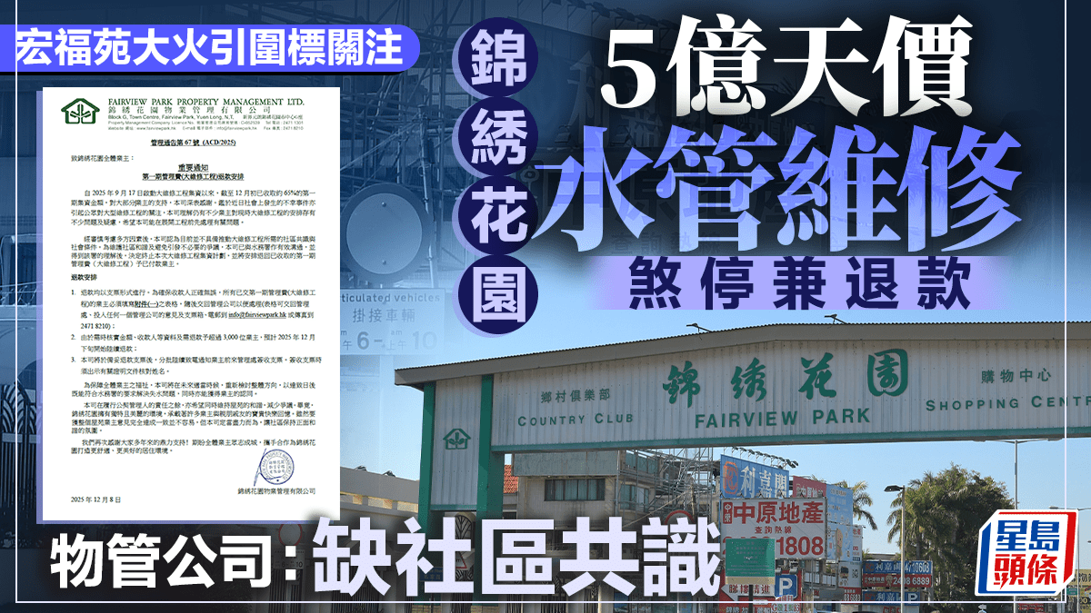 錦綉花園5億水管維修煞停 物管公司指缺「社區共識」 本月下旬起退款