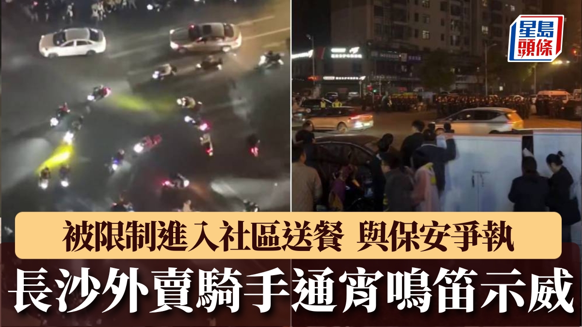 長沙外賣騎手通宵鳴笛示威 不滿被限制進入社區送餐|有片