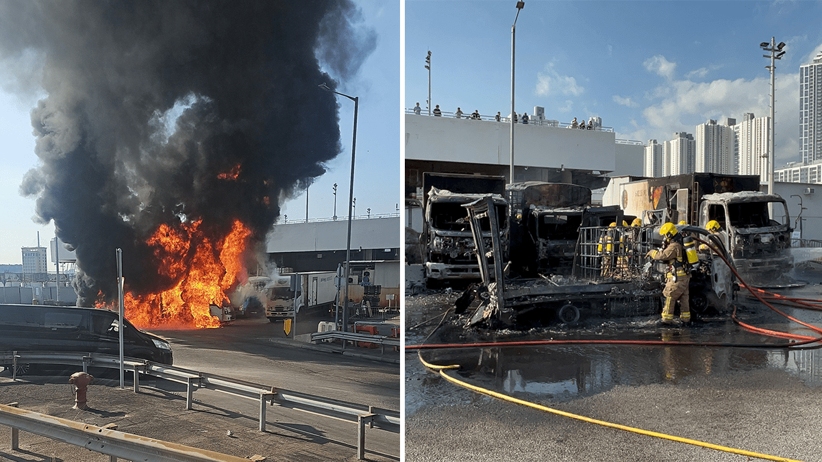 長沙灣魚類批發市場8車起火 黑煙沖天遠處清晰可見 2人受傷送院