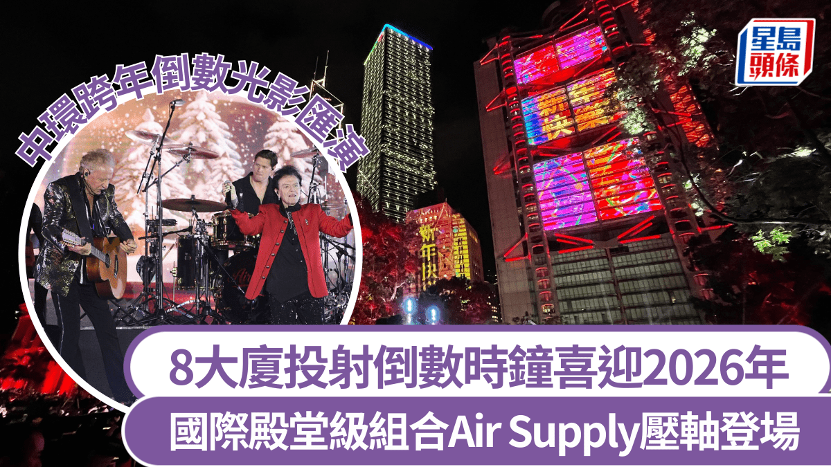 除夕倒數2026︱中環跨年倒數光影匯演 8大廈投射倒數時鐘喜迎2026年