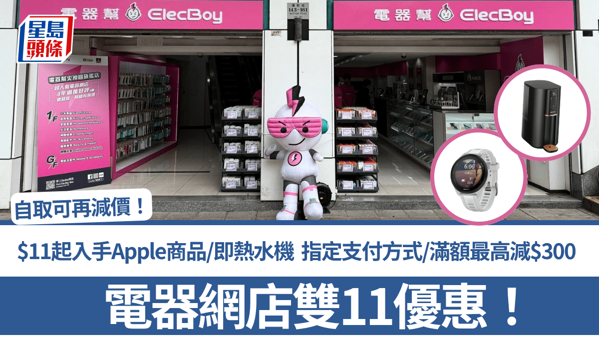 即將踏入11月,意味備受大家關注的年度購物節「雙11」亦要回歸,電器網店「電器幫」由即日起至11月17日推出3波優惠迎接雙11,包括$11起入手風筒、Apple商品、即熱水機等,選用指定方式或是消費滿額最多可減$300,客人選以自取方式更可再減價,讓大家以最優惠價格入手心頭好!
