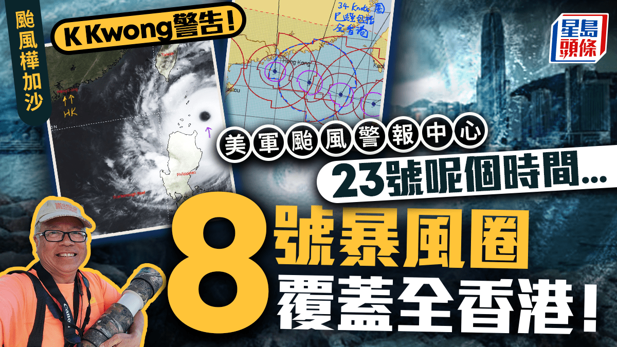 今日(22日),化學博士K Kwong在Facebook上發文,引用美國聯合颱風警報中心(JTWC)的報告,指超強颱風「樺加沙」將在周二(23日)晚上8時,將全港納入34 knots(63 km/h)的暴風圈範圍內,屆時全港料達8號風球風速。