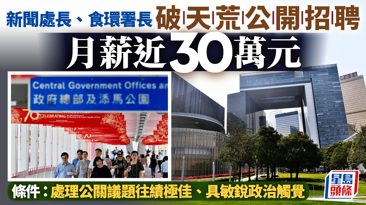 食環署長、新聞處長首次公開招聘 月薪近30萬 條件包括「能處理政治敏感議題」、具策略性視野