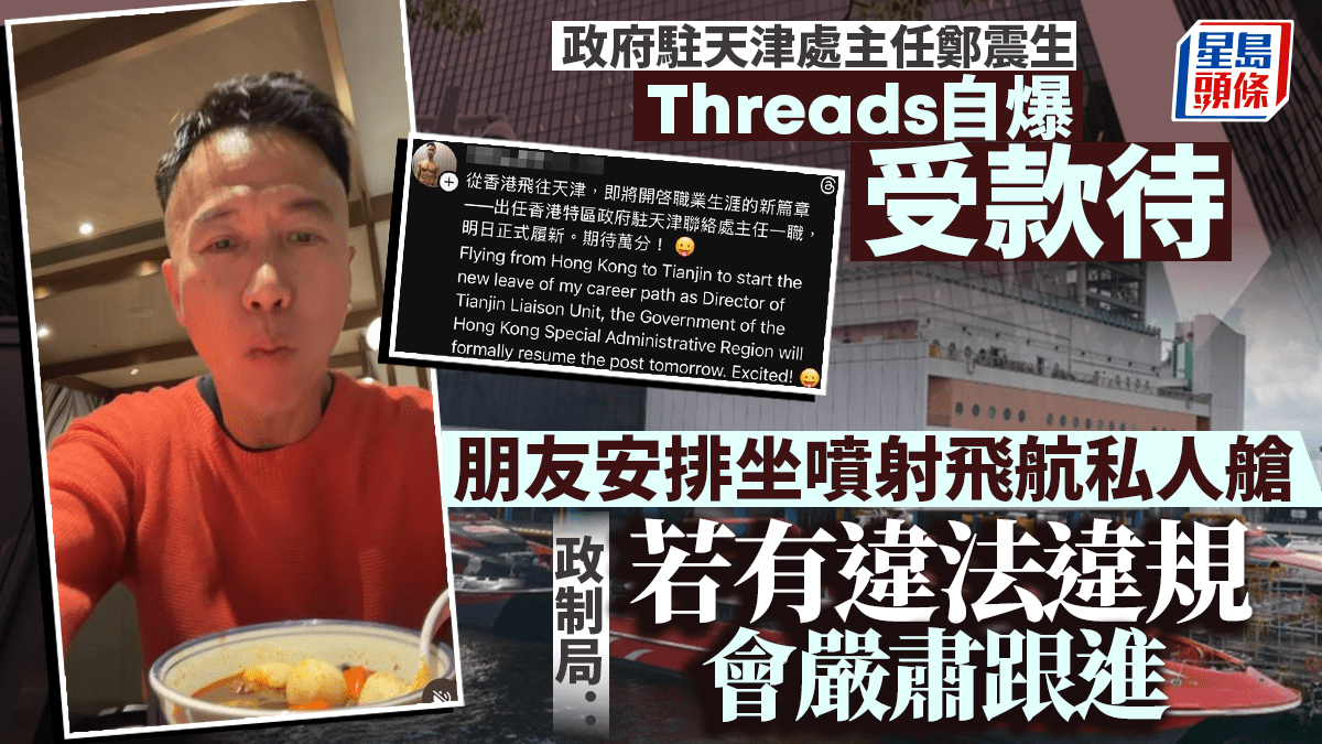 駐天津處主任鄭震生自爆受款待 朋友安排坐噴射飛航私人艙 政制局:如違法違規嚴肅跟進