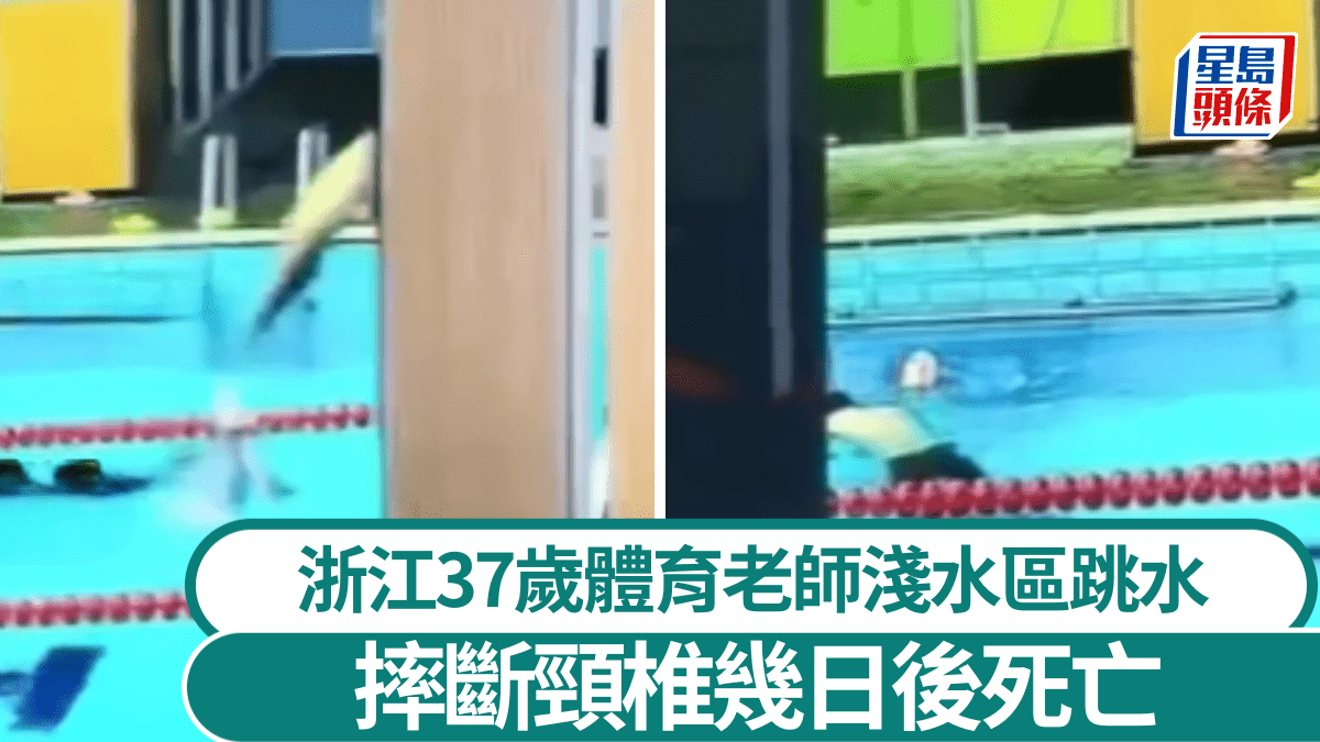 上周六(18日),浙江一名任職小學體育老師的男子在泳池1.1米淺水區跳水不料致頸椎斷裂,其後16分鐘內無人救援,送醫數天後死亡。