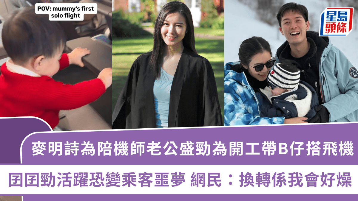 麥明詩為陪機師老公盛勁為開工帶B仔搭飛機 囝囝勁活躍恐變乘客噩夢 網民:換轉係我會好燥