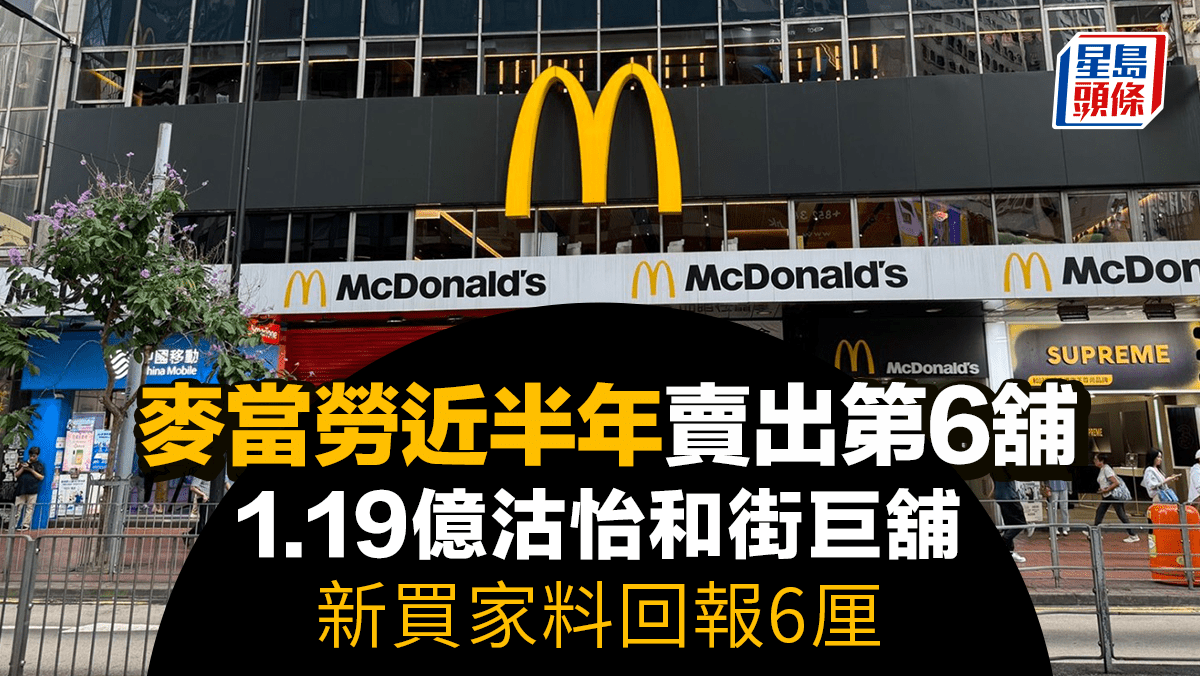 麥當勞賣舖|麥當勞近半年賣出第6舖 1.19億沽銅鑼灣怡和街巨舖 新買家料回報6厘