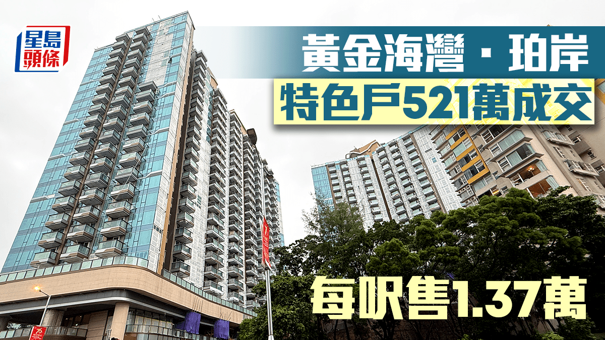 黃金海灣.珀岸特色戶521萬成交 每呎售1.37萬