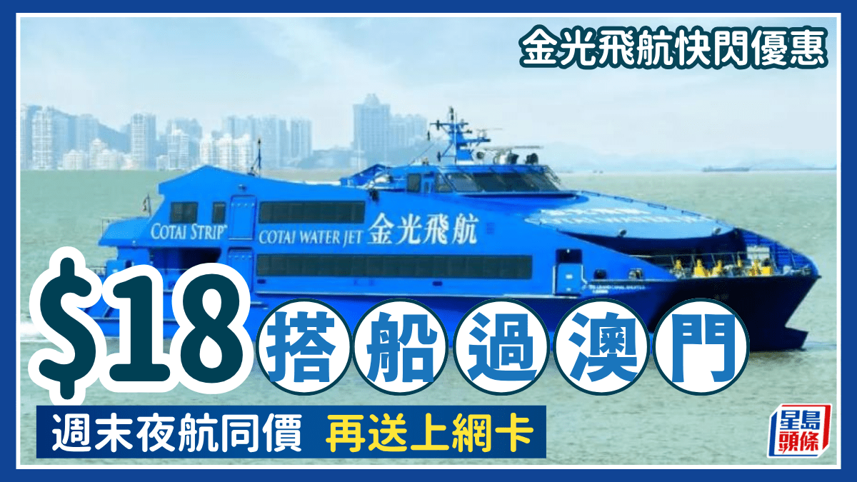$18起搭船過澳門!金光飛航快閃優惠 上環至氹仔碼頭 週末夜航同價 再送上網卡