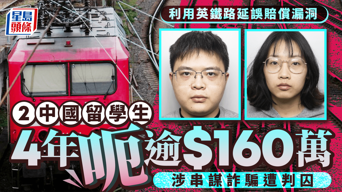 2名中國留學生在英國利用鐵路延誤賠償的漏洞,策劃一宗涉及超過15萬英鎊(約港幣160萬元)的火車票詐騙案,分別被判囚30個月以及17周。