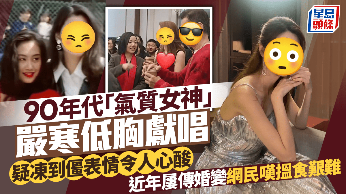 90年代「氣質女神」嚴寒低胸獻唱 疑凍到僵表情令人心酸 近年屢傳婚變網民嘆搵食艱難