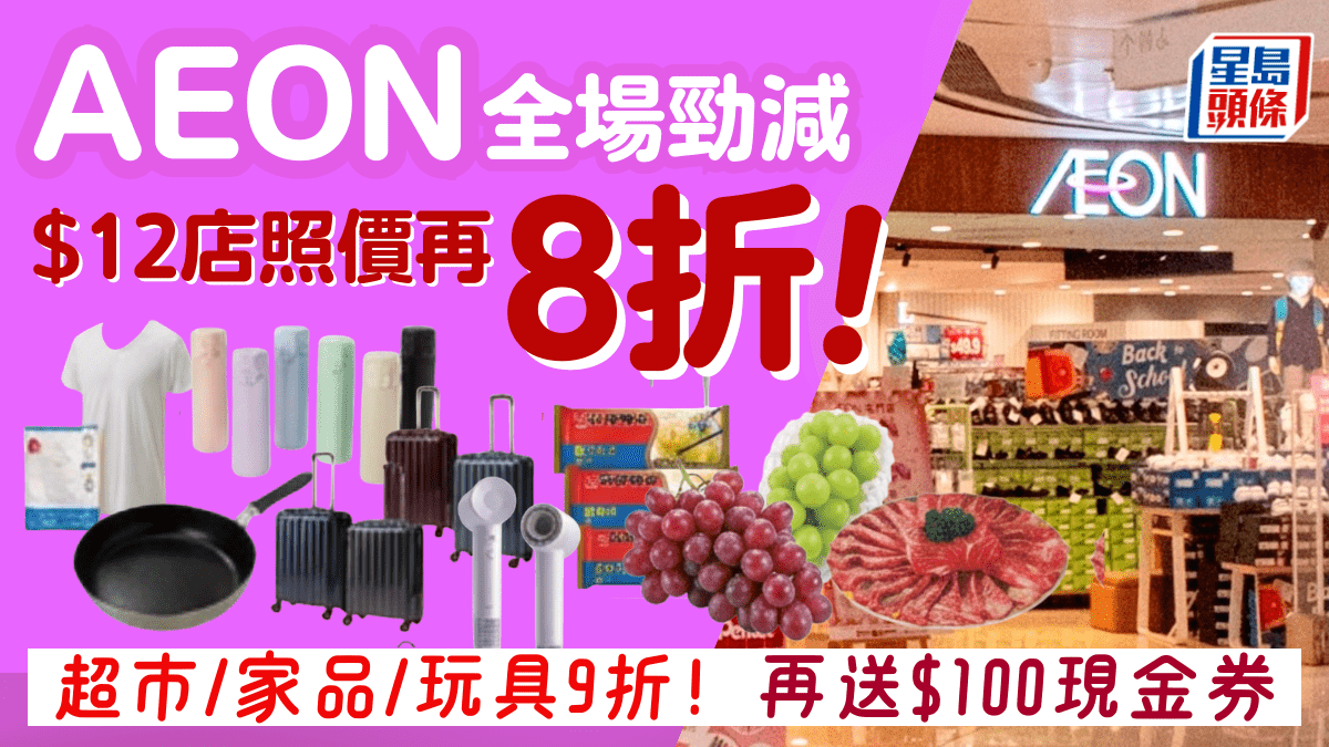 AEON年末勁減!$12店低至8折 超市/家電/服飾折上折再送$100現金券