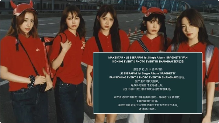 LE SSERAFIM 取消原定明日舉行上海簽售會 遭內地粉絲炮轟 主辦方:因「不可抗力因素」被逼取消